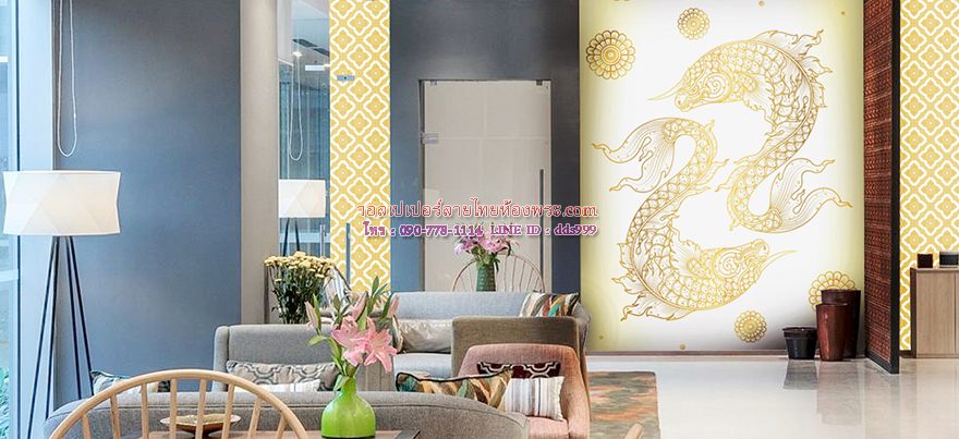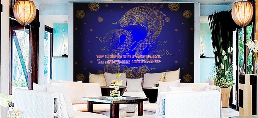 วอลเปเปอร์ลายไทย ลายปลาคราฟ ภาพวิวมงคล วอลเปเปอร์ลายมงคลเสริมดวง ในการค้าขาย การทำธุรกิจ